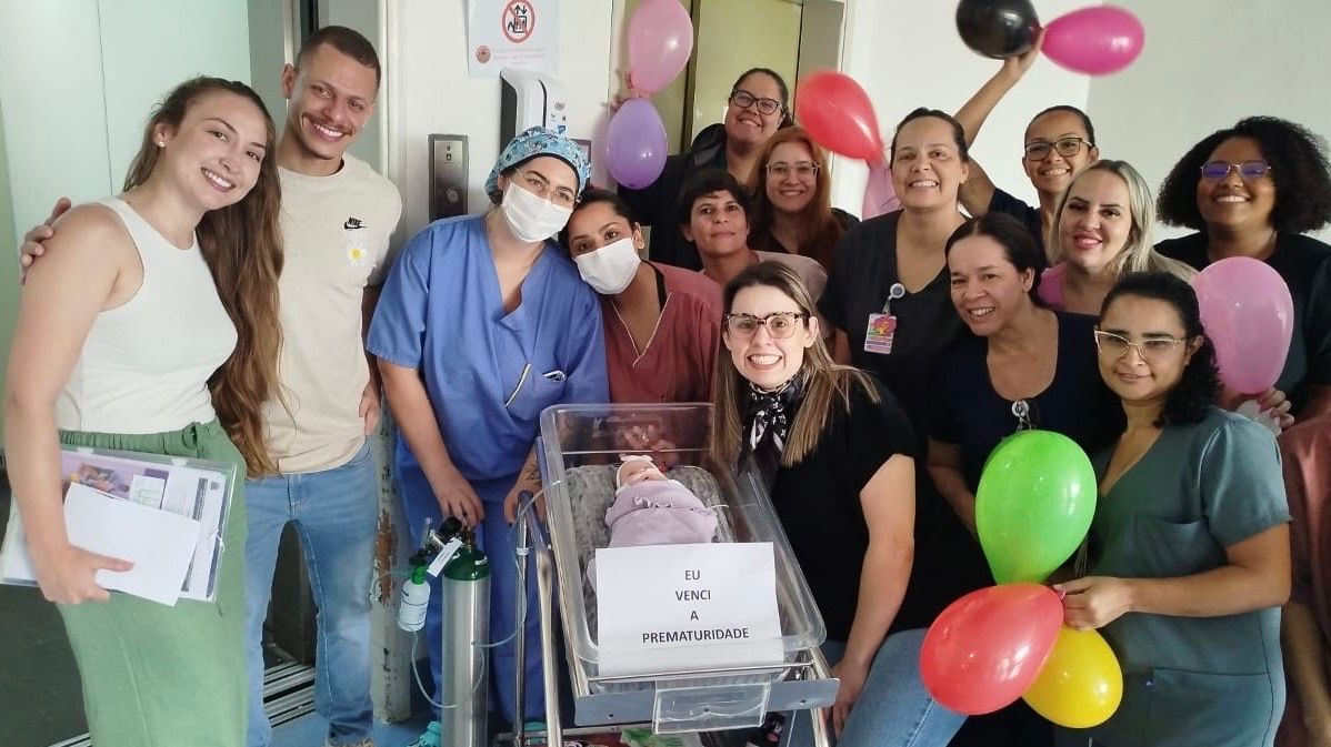 O Hospital Municipal Dr. Waldemar Tebaldi, em Americana, viveu um momento de emoção nesta quarta-feira (8). Depois de 3 meses e 25 dias de internação, uma recém-nascida que chegou à UTI Neonatal após apenas 25 semanas de gestação e com 750 gramas recebeu alta e foi para casa nos braços dos pais, encerrando uma jornada marcada por força, fé e muito amor. Desde o nascimento, a pequena Helena enfrentou inúmeros desafios, comuns aos grandes prematuros, e superou cada um deles com o apoio incansável da equipe multiprofissional do hospital, que acompanhou cada pequeno avanço com dedicação e esperança. “Ver uma bebê tão frágil, que chegou cabendo na palma da mão, sair daqui saudável para casa é o maior presente que podemos receber. Cada vitória dessas renova nosso propósito e reafirma a importância do cuidado humanizado que oferecemos todos os dias”, destacou a coordenadora do eixo materno-infantil, Sarah Guimarães. Para celebrar o momento, a equipe da UTI Neonatal preparou uma homenagem especial, simbolizando o carinho, o vínculo e a gratidão construídos ao longo dessa trajetória. O secretário de Saúde, Danilo Carvalho Oliveira, destacou a emoção do momento e o valor humano por trás de cada vida salva. “Cada bebê que deixa a UTI Neonatal representa mais do que uma alta médica, é uma história de superação, amor e esperança que envolve famílias inteiras e profissionais dedicados. A pequena Helena nos lembra do poder do cuidado e da união em torno da vida. Momentos assim reforçam o sentido do nosso trabalho na saúde pública e renovam a certeza de que vale a pena cada esforço, cada plantão, cada gesto de acolhimento”, afirmou. A presidente do Grupo Chavantes, Dra. Letícia Bellotto Turim, também ressaltou a importância desse resultado. “Momentos como esse representam o compromisso do nosso grupo com a excelência e a vida. A recuperação da Helena é fruto de um trabalho técnico de alto nível, mas também de um cuidado sensível, que acolhe o bebê e sua família. É motivo de orgulho para todos nós ver histórias como essa se transformarem em finais felizes.” O Hospital Municipal Dr. Waldemar Tebaldi é administrado pelo Grupo Chavantes, por meio de gestão compartilhada com a Secretaria Municipal de Saúde da Prefeitura de Americana.
